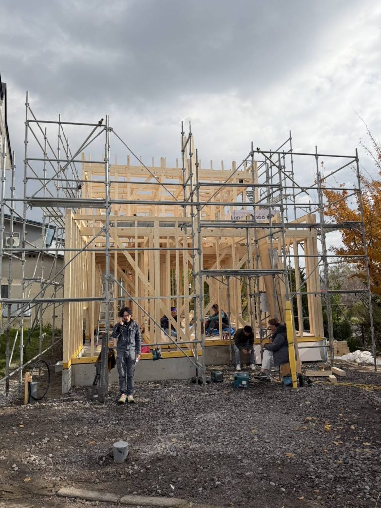 まだこの段階では家の形は見えませんが、どんどん工事を進めていくと、、、